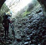 Como os iba diciendo discurriréis todo el tiempo por fincas privadas paralelos siempre al río, cruzaréis 2 túneles, largos, (llevad luces), son túneles que enlazaban con Cala por el tema de las minas. Por la derecha en los túneles si no recuerdo mal hay unas zonas asfaltadas que os pueden servir para evitaros el pedregal que encontraréis dentro. Tendréis que saltar alambradas y puertas, con suerte os las encontraréis abiertas, pero los de las fincas las cierran para que no se escapen los toros.