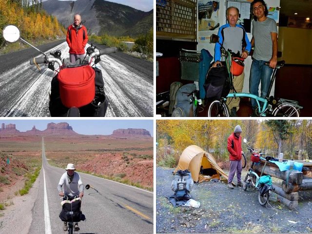 Heinz fue fiel durante más de 40 años a su vieja bicicleta, de tres velocidades, sobre la que pedaleó unos 450 mil kilómetros. “Reemplacé la mayor parte de las partes móviles. A mediados de los 80, del aparato original sólo quedaban el marco y un par de cosas más”. En 2003, sin embargo, una compañía parisina lo sedujo con un vehículo 10 kilos más ligero, de 21 velocidades. Después, la empresa Bike Friday lo convenció de usar una de las suyas por un convenio de patrocinio. Lo mismo ocurrió con la de ahora, una pequeña Brompton, donde lleva entre 40 y 50 kilos de equipaje con diarios, refacciones, herramientas, ropa, sliping , tienda de campaña y unos pocos artículos de cocina.