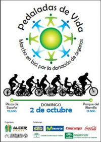La Asociación para la Lucha Contra las Enfermedades Renales (Alcer Giralda) y A Contramano han organizado para el próximo 2 de octubre una marcha en bici por la donación de órganos. "Pedaladas de vida", que así se llama esta iniciativa, partirá a las doce de la mañana desde la Plaza de España para llegar hora y media más tarde al Parque del Alamillo.