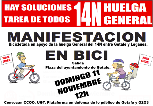 Desde los más pequeños hasta las personas mayores se han querido sumar a una "bicicletada", en la que los participantes han llamado a acudir a la huelga del 14 de noviembre.