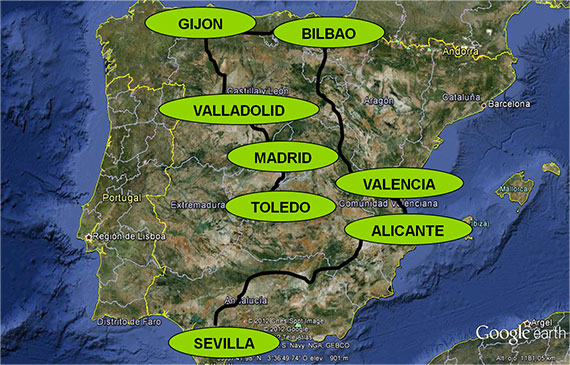 Las fechas serán del 9 de marzo que partiremos de la plaza de España en Sevilla, al 29 de marzo que llegaremos a la plaza del Ayuntamiento de Toledo, tras realizar en torno a 2.500 kms.