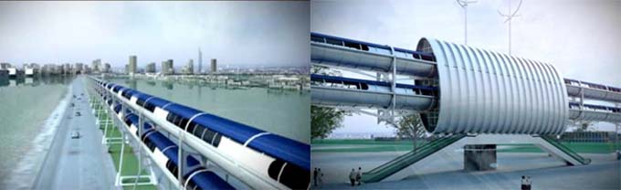 Cada sentido de la marcha transcurriría por un conducto separado, para evitar los choques frontales. Se podría acceder a la calle y puntos clave de conexión con otros transportes en tramos concretos, y su utilización sería gratuita.