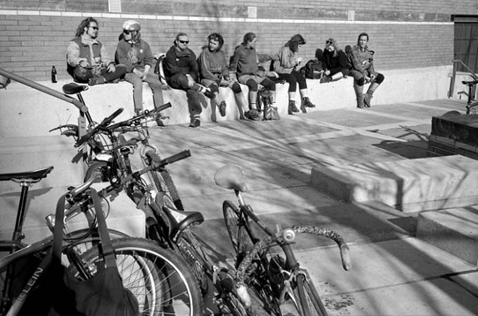Cuando llegué a Toronto empecé a fotografiar a mis amigos. Me gusta captar momentos íntimos entre gente que conozco. Trabajaba en un laboratorio fotográfico, pero mi amor a la bicicleta me llevó a convertirme en bicimensajero y concentrarme en mis propias fotografías. Cuando conocí a varios, empecé a fotografiarles en ese tipo de instantes íntimos. Encontré a la gente relajada y me integré en el grupo, lo que me permitió documentar la sensación de pertenencia que se da en la comunidad de mensajeros. Son una subcultura única en Toronto, que me atrajo por su camaradería, su estatus ‘outsider’, su orgullo por sus habilidades en biciceta y su lealtad entre ellos.