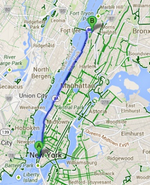 Recorrido: Es el más largo de la parte oeste. En total son 11 millas (18 kilómetros) empezando en el pico sur de la isla de Manhattan hasta el puente de George Washington.