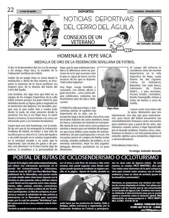 Asimismo, se proporciona una ventana con recetas de cocina adaptadas al ciclista. Son platos preparados o de los menús que se van encontrando en los locales de alguna ruta. Contiene otra ventana dedicada al descrecimiento para que se pueda opinar y comentar sobre la situación global. Más información en www.curriqui.es ó PACO MARTINEZ, TLFNO. 619 40 39 26