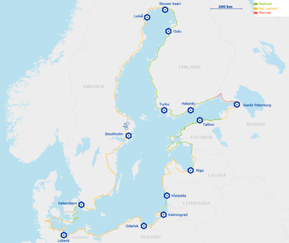 Lo atractivo de este camino es que comienza y termina donde uno quiere, ya que es la única ciclovía de las 15 que permite volver al lugar de inicio. En 7.980 kilómetros conectará nueve países: Lituania, Letonia, Estonia, Rusia, Finlandia, Suecia, Dinamarca, Alemania y Polonia.