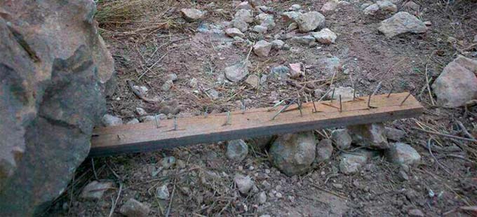 Cables de acero cruzados de árbol a árbol, rocas y troncos obstaculizando los senderos, maderas con clavos colocadas en mitad de los caminos e incluso estacas afiladas semienterradas en el suelo son sólo algunas de las trampas denunciadas por los ciclistas de Galicia. Tal y como contempla el fiscal de Pontevedra, este tipo de actos no sólo va destinado a impedir el paso a los ciclistas. Una estaca de madera afilada o un cable colocado a la altura del cuello son trampas con una finalidad mucho más oscura, por lo que sus autores deben ser castigados con el máximo rigor del Código Penal. Precaución en el monte, queridos ciclistas.