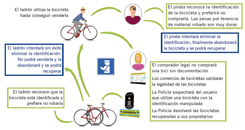 marcaje de la bicicleta que actúan como elemento disuasorio para los ladrones de bicicletas y para los posibles
