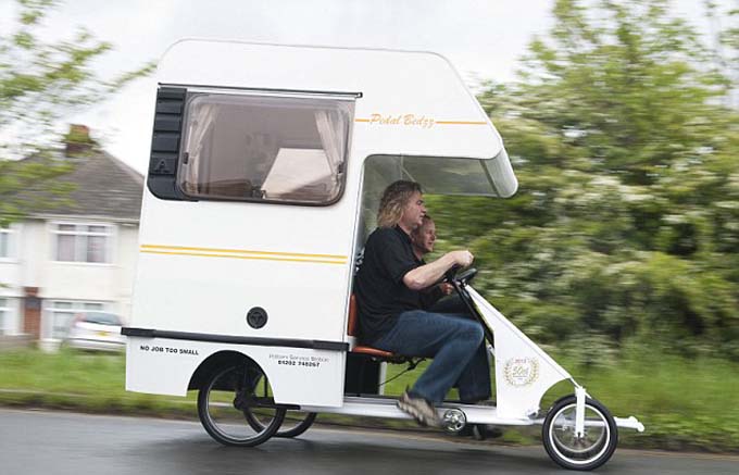 Inspirado en la idea de Kevin Cyr, quien en 2011 presentó su casa rodante propulsada a pedal, Andy Saunders, un mecánico británico amante de los automóviles construyó la Pedal Bedzz, que ha sido la casa rodante más pequeña del mundo también con propulsión pedal al estilo tándem.