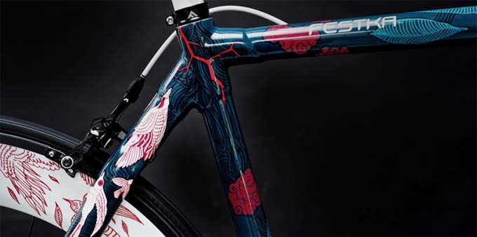 Fetska, una marca de bicis de la República Checa creó una bici totalmente de fibra de carbono con ilustraciones de los artistas locales Tomanski y Polanski. Su diseño evoca a la velocidad y al aire.